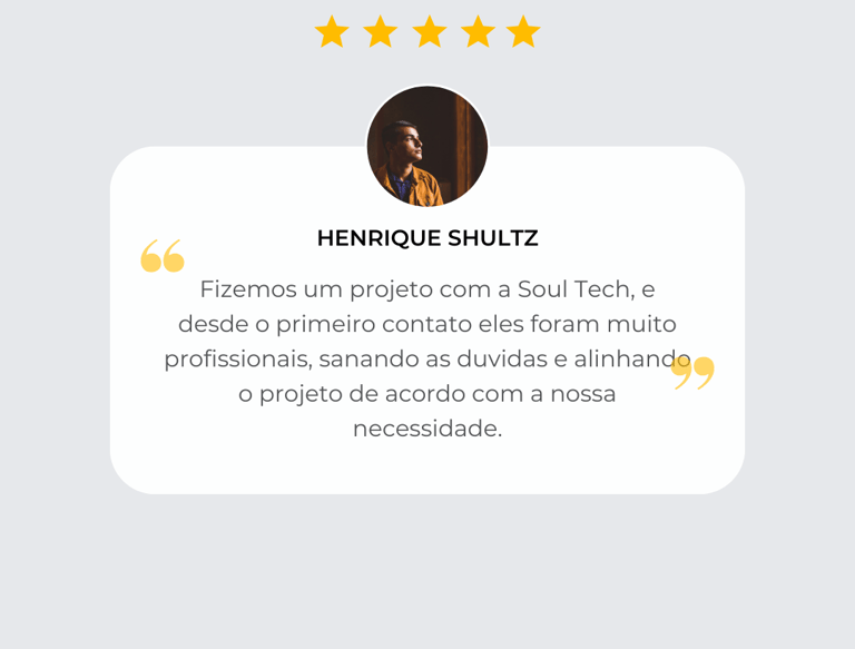 A Soul Tech transformou nossa segurança com soluções inovadoras e eficientes. Recomendo seus serviços a todos!